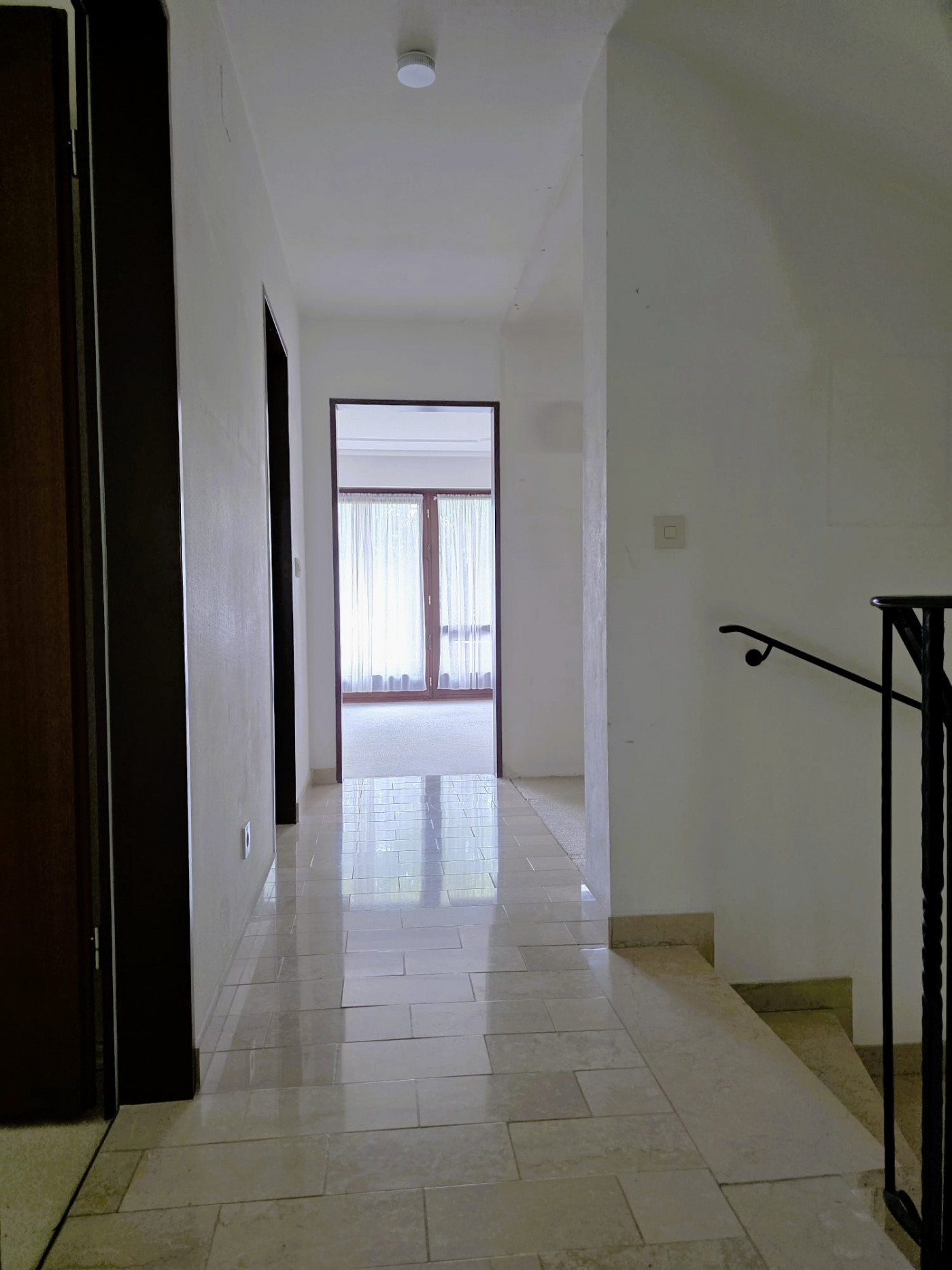 Auch die Räumlichkeiten im Obergeschoss überzeugen durch Schnitt und Größe: 3 Zimmer, Badezimmer und Süd-Balkon bieten nicht nur ausreichend Platz, sondern auch weiteres Potenzial für individuelle Gestaltungsmöglichkeiten. Das Badezimmer ist mit Badewanne und Doppelwaschbecken ausgestattet.