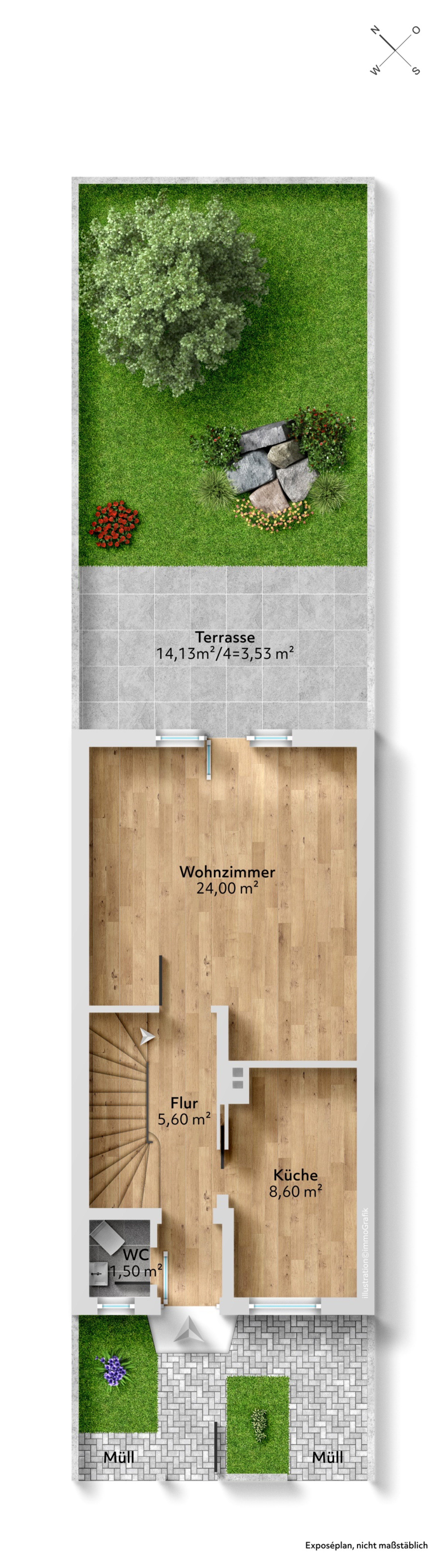 – ca. 114 m² Grundstücksfläche