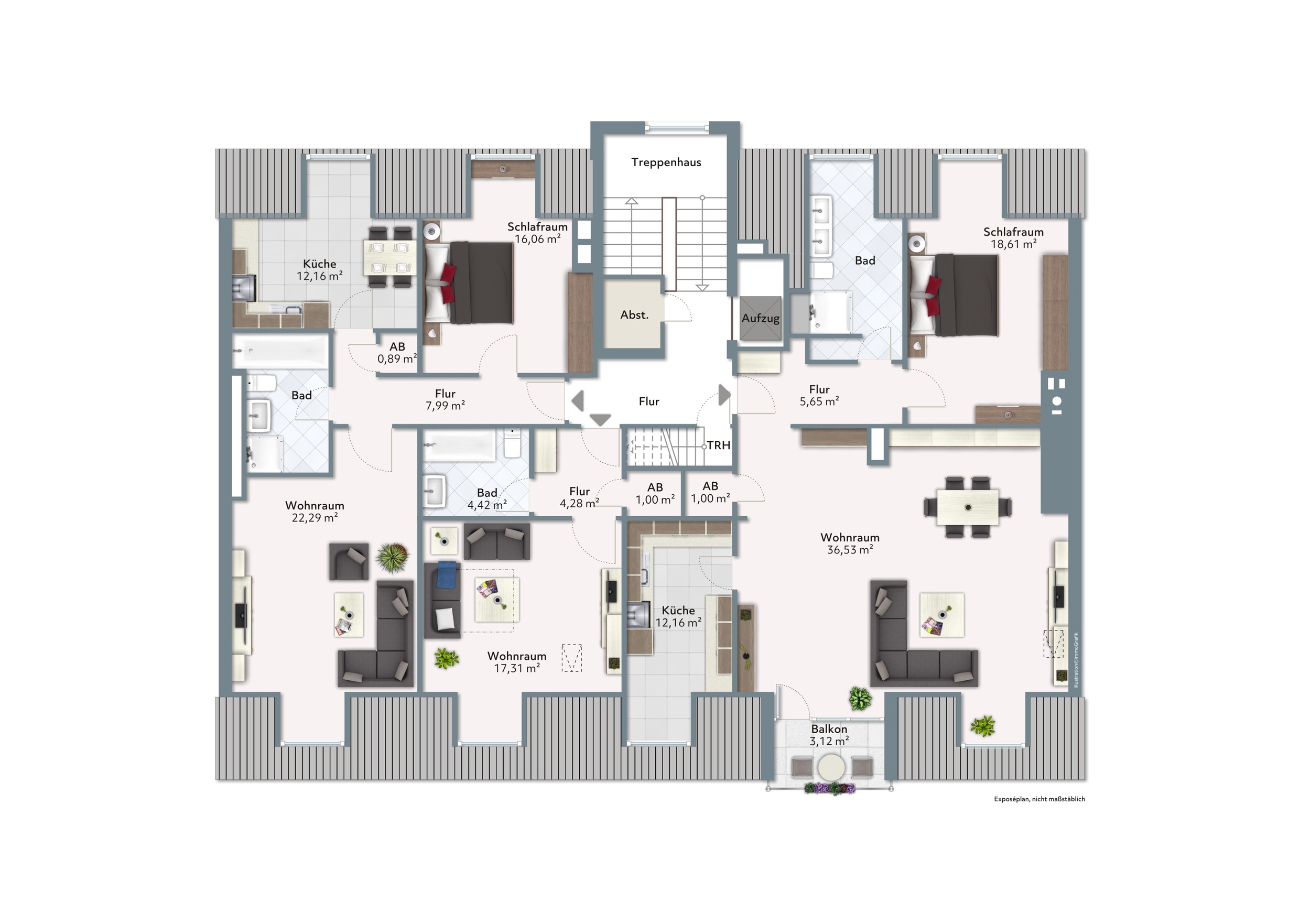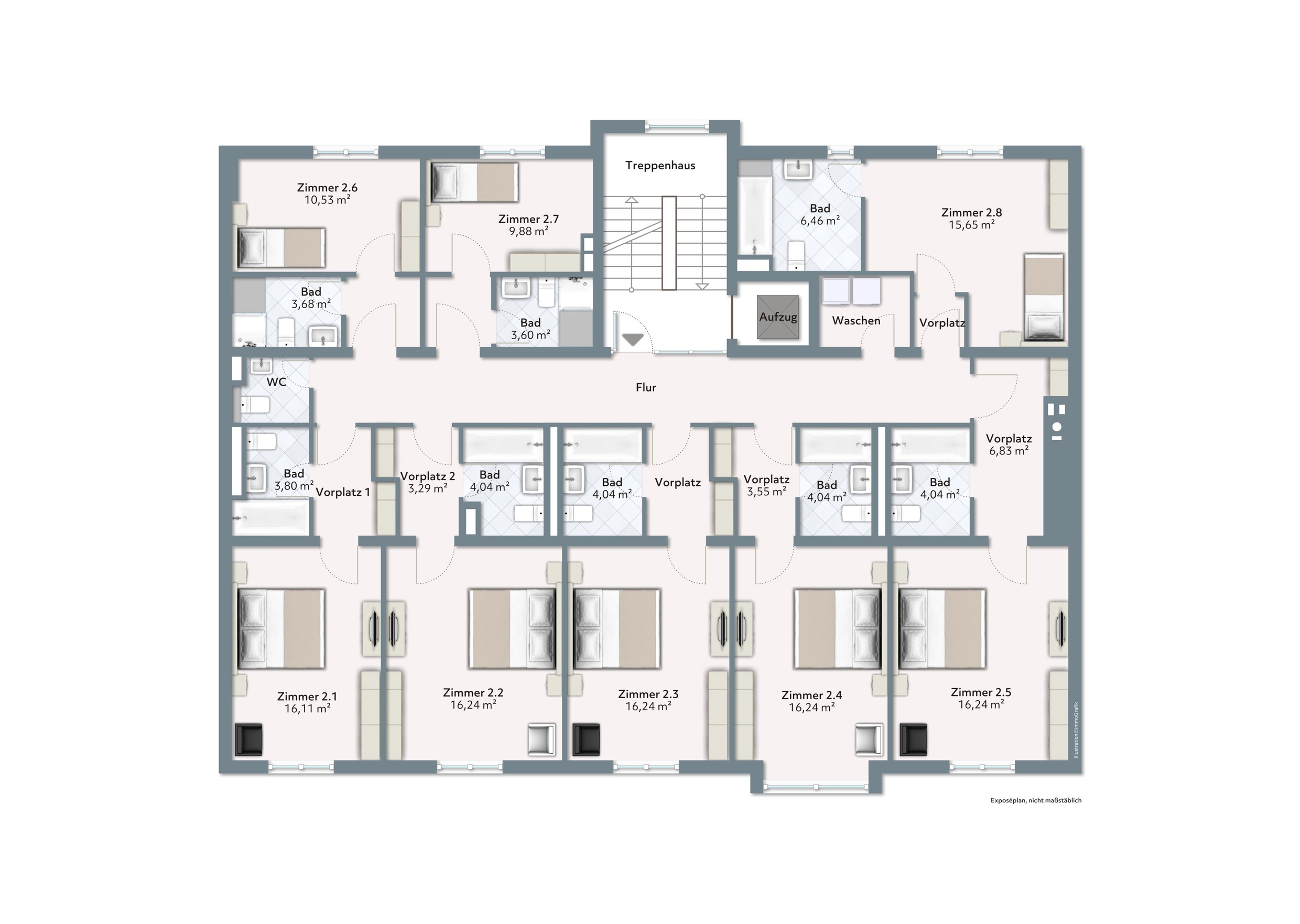 – 15 Parkplätze: 9 Tiefgaragenstellplätze, 6 Außenstellplätze