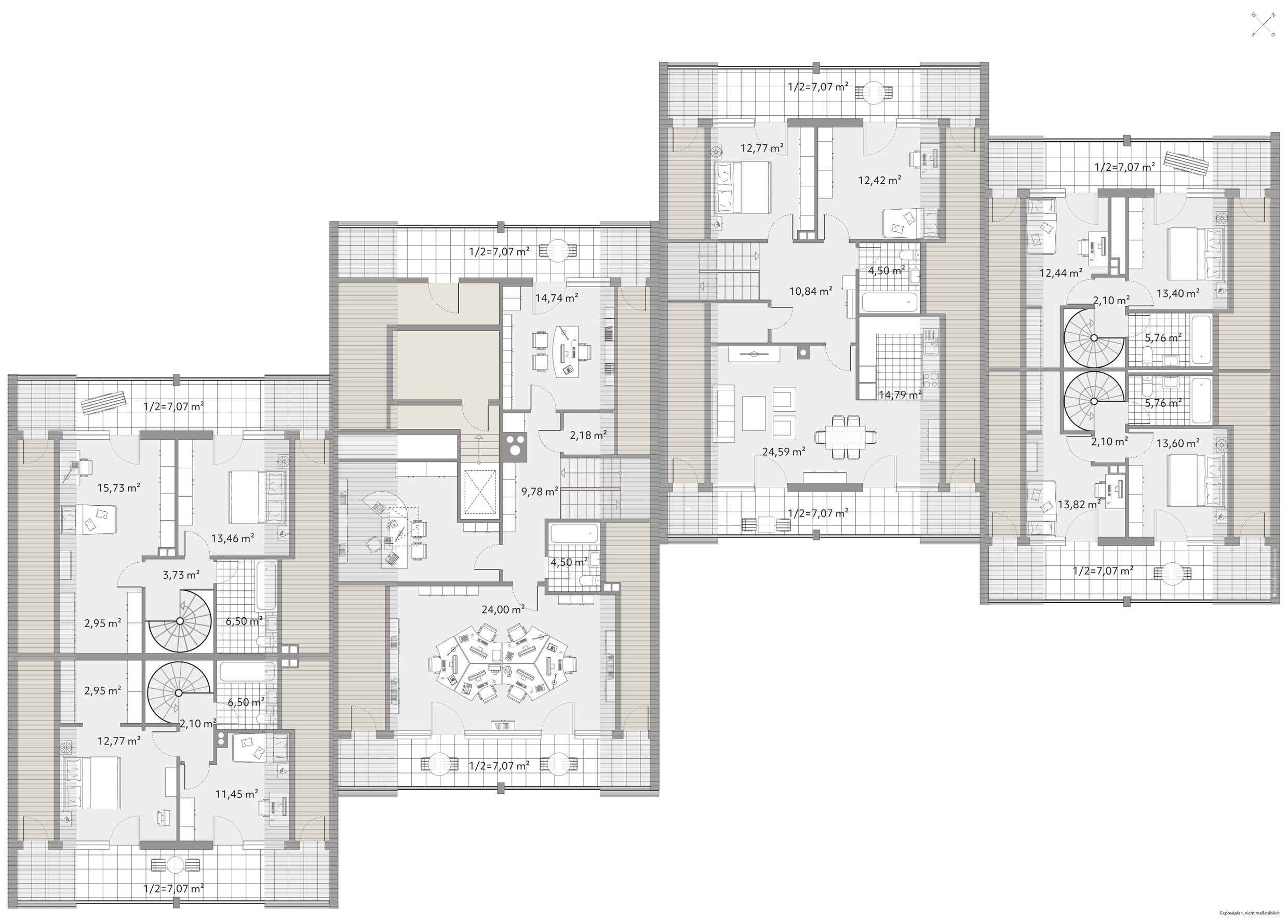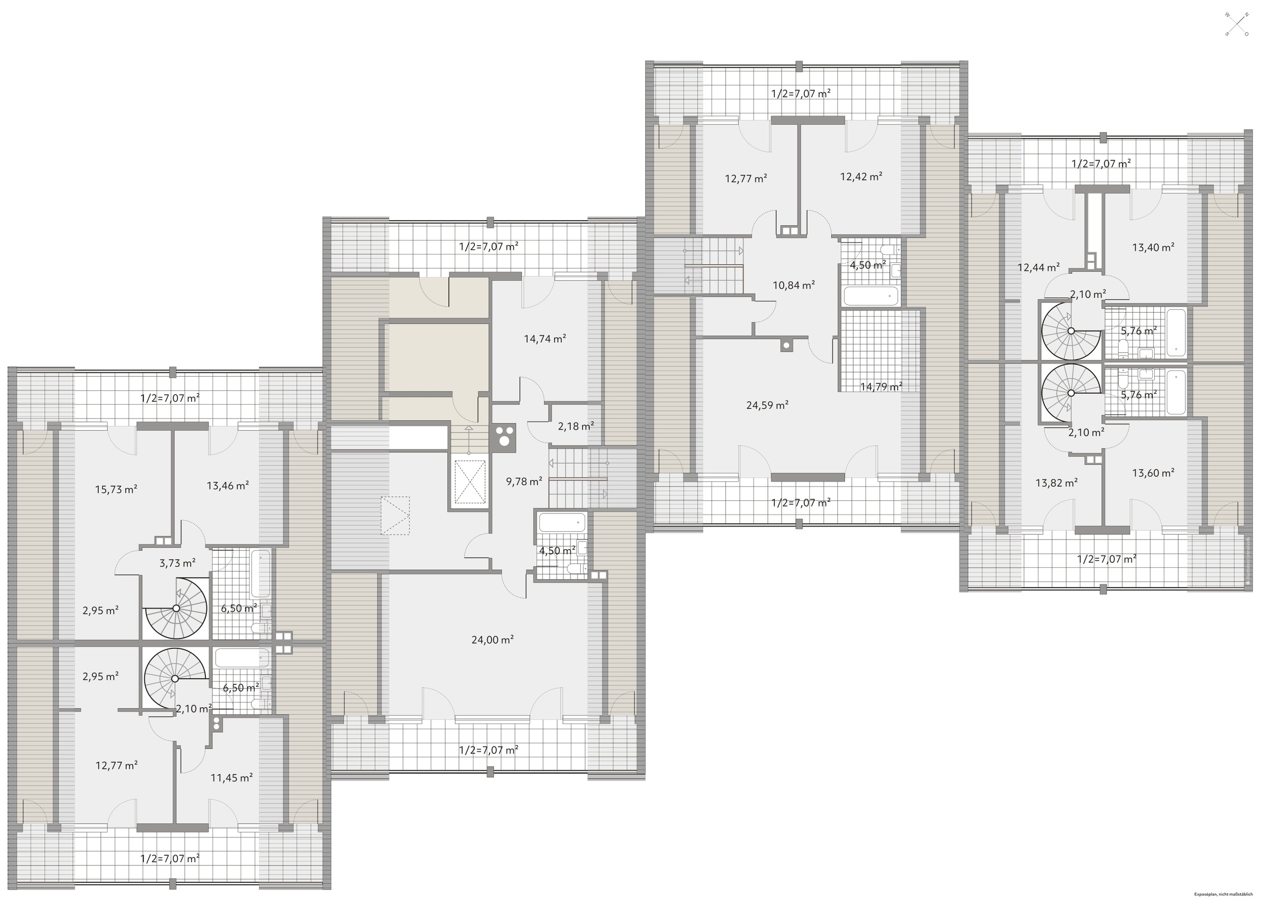 In den beiden obersten Etagen befinden sich die Mietwohnungen. Im 2. OG befinden sich die Wohnungen, bei denen es sich größtenteils um 1- bis 3-Zimmer Maisonette-Wohnungen handelt.